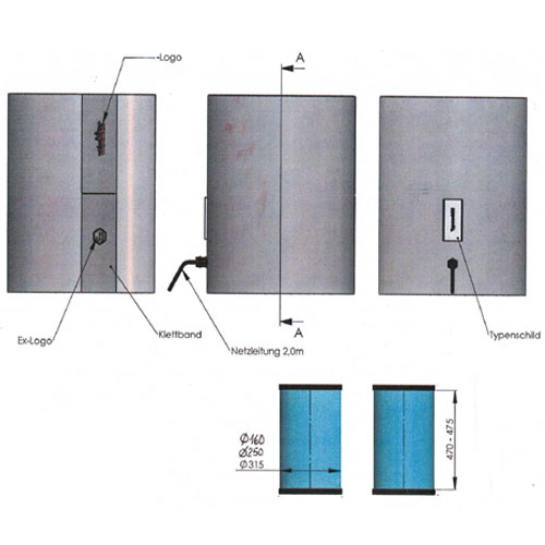 Heizmanschetten als Frostschutzbeheizung für Säuredunstabscheider SDA160, SDA250 und SDA315 (Für SDA90 und SDA125 keine Liefermöglichkeit). Mit selbstbegrenzendem Heizband 20W/m (bei +10°C); in Taschen /Glasseidengewebe unverrückbar verlegt; elektrischer An- und Abschluss in Heizmanschette verbaut; ohne Temperatursensor; für den Einsatz im explosionsgefährdeten Bereich der Zone 1/2 (Gas) und Zone 21/22 (Staub); Technische Daten: Betriebsspannung 230 VAC; Leistung für SDA160: 120 W; Leistung für SDA250: 200 W Leistung für SDA315: 250 W Max. zulässige Betriebstemperatur 65°C; Schutzart: IP65; Schutzklasse I Isolationsmaterial: Glasseidenmatte ca. 25 mm dick; Aussen- und Innenmantel mit elektrostatisch ableitfähigem PTFE-beschichteten schwarzem Glasseidengewebe; Befestigung mittels Klettverschlusses. Das selbstbegrenzende Heizband wird über eine Kabelverschraubung. Auf der Rückseite herausgeführt und in dem mitgelieferten EX-e-Anschlusskasten Typ WZX188EX mittels Kaltanschlussset angeschlossen; Schutzart: IP65; Schutzklasse I Anschlussleitung mit Aderendhülsen LL= 2 m, ohne Stecker. EG-Baumusterprüfbescheinigung: Heizband SIRA 17 ATEX 3335U, SIRA 18 ATEX 3038X Ex-Kennzeichnung: Gas EX II 2G Ex 60079-30-1 IIC T6 Gb, Staub EX II 2D Ex 60079-30-1 IIIC T85°C Db Inkl. Ex-e Anschlusskasten Typ WZX188EX für die Verlängerung der Netz Anschlussleitungen im Ex-Bereich Technische Daten: Nennspannung bis 400 VAC Schutzart: IP66 nach EN 60529 Ausstattung: 2 Verschraubungen und 2 Blindstopfen M20x1,5 für Kabeldurchmesser 7-12 mm, 6 Reihenklemmen (4 mm2) für max. 3 Beheizungen Abmessungen: 120 x 122x 91 mm Material: glasfaserverstärkter Polyester mit Graphitzusatz mit einem Oberflächenwiderstand < 10 hoch 9 Ohm EG-Baumusterprüfbescheinigung: PTB 00 ATEX 1002 (9.Ergänzung) Ex-Kennzeichnung: Gas EX II 2G Ex d e ia (ia) mb IIC T6, T5, T4 Gb Staub EX II 2D Ex tb IIIC T85°C, T100°C, T135°C Db Umgebungstemperatur: -20°C </= Ta </= +40°C Wichtige Hinweise: - Verschraubungen müssen dicht abschließen - Dichtung im Gehäuse muss funktionsfähig sein - Anzugsdrehmoment Reihenklemme (UK 5) 0,6 0,8 Nm Ex- Produkte sind nicht in ihrer Gesamtheit nach ATEX zertifizierte Produkte (keine Systemzulassung). Es handelt sich um elektrische Begleitheizungen im Sinne der EN 60079-30-1 für den Einsatz im vorgenanntenEx-Bereich, die aus einzeln zugelassenen elektrischen Komponenten für die jeweils eine eigene EG-Baumusterprüfbescheinigung vorliegt, bestehen. Es obliegt in der Verantwortung des Betreibers die Eignung der Ex-Produkte vor Ort in seiner Anlage zu gewährleisten. Nichteinhaltung der in der Montage- und Betriebsanleitung aufgeführten Sicherheitshinweise, sowie Nichtbeachtung der Vorgaben des Herstellers kann zu Schäden führen und es erlischt die Gewährleistung. |