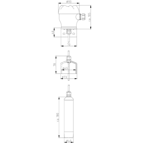 Leckagesonde mit Ø40mm Fühlerteil, PE, Anschlusskopf und Rohrkappe Ø63mm mit Stellverschraubung