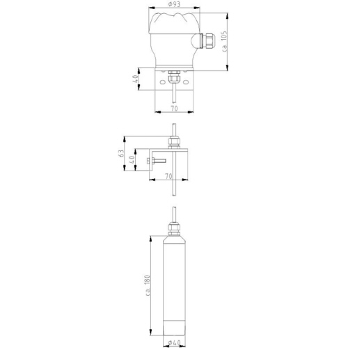 | Leckagesonde mit Ø40mm Fühlerteil, PE, Anschlusskopf und Befestigungswinkel mit Stellverschraubung |