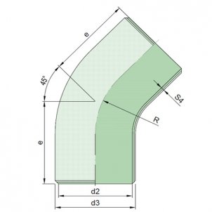 UP-GF Bogen 45° DIN 16 966, Form E2, Rohrtyp D, mit Laminatenden, PN 16