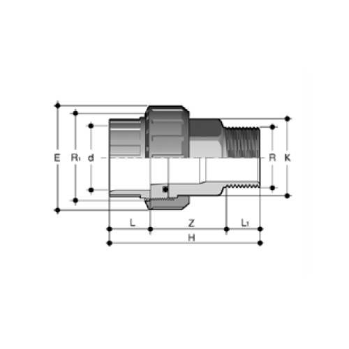 | - Anschluss bis 63 mm: Einlegeteil Messing/Einschraubteil PVC U Klebemuffe - O-Ringdichtung EPDM - Überwurfmutter aus PVC U - Überwurfmutter und Gewindeeinlegeteil mit zylindrischem Gewinde nach ISO 228 - ab d 75 mm anderes Design |